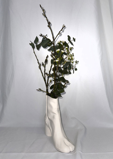 Проект вдохновлен ДНК бренда Maison Margiela. Реплика их культовой обуви Tabi нашла воплощение в белоснежном фарфоре, где традиция заимствования заиграла новым смыслом и применением.
