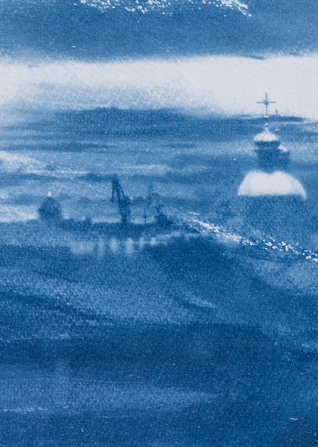 При создании концепции этих снимков я была вдохновлена серией фотографий «Шарона „Яари Радиус 500 м“ которые были сделаны в радиусе 500 метров от его бывшей студии в Тель-Авиве, что и дало название серии. Кивок в сторону концептуального прошлого фотографии, равно как и возникший в современности разрыв между прошлым и будущим этого вида искусства». Мои снимки были сделаны из одного оконного проема, выбор сюжетов снимков также подчеркивает сочетание прошлого и будущего искусства. Но главным художественным приемом становится — цианотипия. Из негативов, созданных при помощи новейшего полноматричного фотоаппарата, были сделаны отпечатки при помощи бессеребряного фотопроцесса изобретенного в 1842 году.