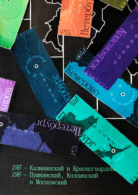 Цвет марки подстраивается под индекс почтового отделения: индекс и цветовой код сопоставляются и получается уникальный цвет