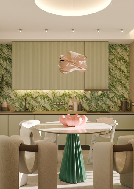 Интерьер квартиры для семьи с теплой атмосферой. Создавая интерьер квартиры, зародилась идея — дом как место, отражающее мировоззрение, взгляды и интересы семьи. Особое внимание уделено функциональности интерьера, а характера ему добавили чистые линии, округлые формы и натуральные материалы. Семья любит много путешествовать и с особой любовью относится к природным мотивам. Оформление интерьера наполнено воспоминаниями о незабываемых летних путешествиях на природе.