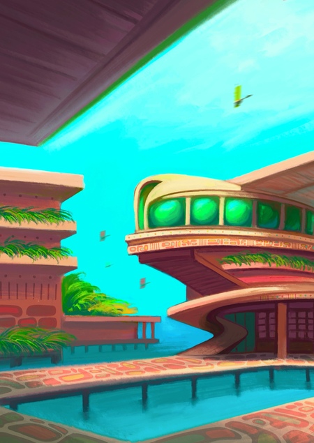 На финальном кадре изображен центральный порт города, где начинаются гонки.