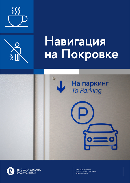 For navigation on campus, a lettering system for shells using Latin letters was chosen, except for double and fundamentally different readings in Russian and English. The designers developed a package of visualized icons for the premises/campus area. They are used on maps, front-door plates, and create a single visual image of campus space. Another group of elements are floor stickers and guide lines: they are not suitable for installation, they may be of any size, they allow for a large icon or inscription and they correspond to the user’s angle of vision.