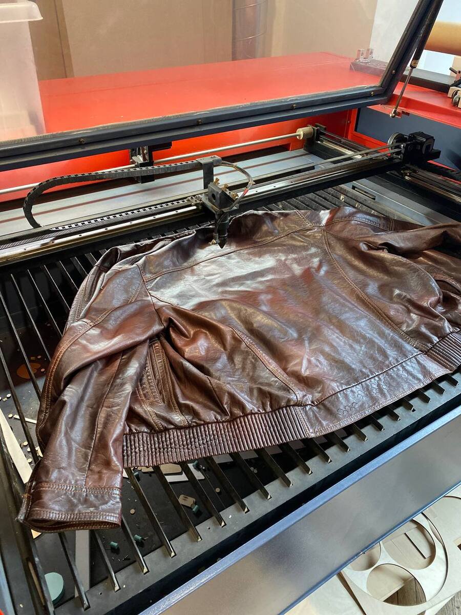 Коллекция одежды, доработанной с использованием лазерного гравировщика. Показ коллекции с помощью робо-руки.
