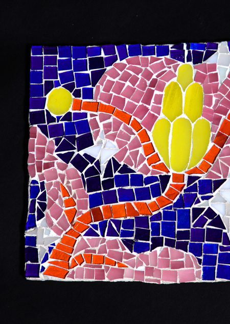 В этом модуле я создала мозаику из смальты, а также триптих из стекла. Все работы связаны с цветами. Мысли о весне, рождении, цветении являются основными в моем проекте. Все начинается с грубого земного цветка из смальты и перетекает в историю инопланетного растения, рассказанную в трех работах