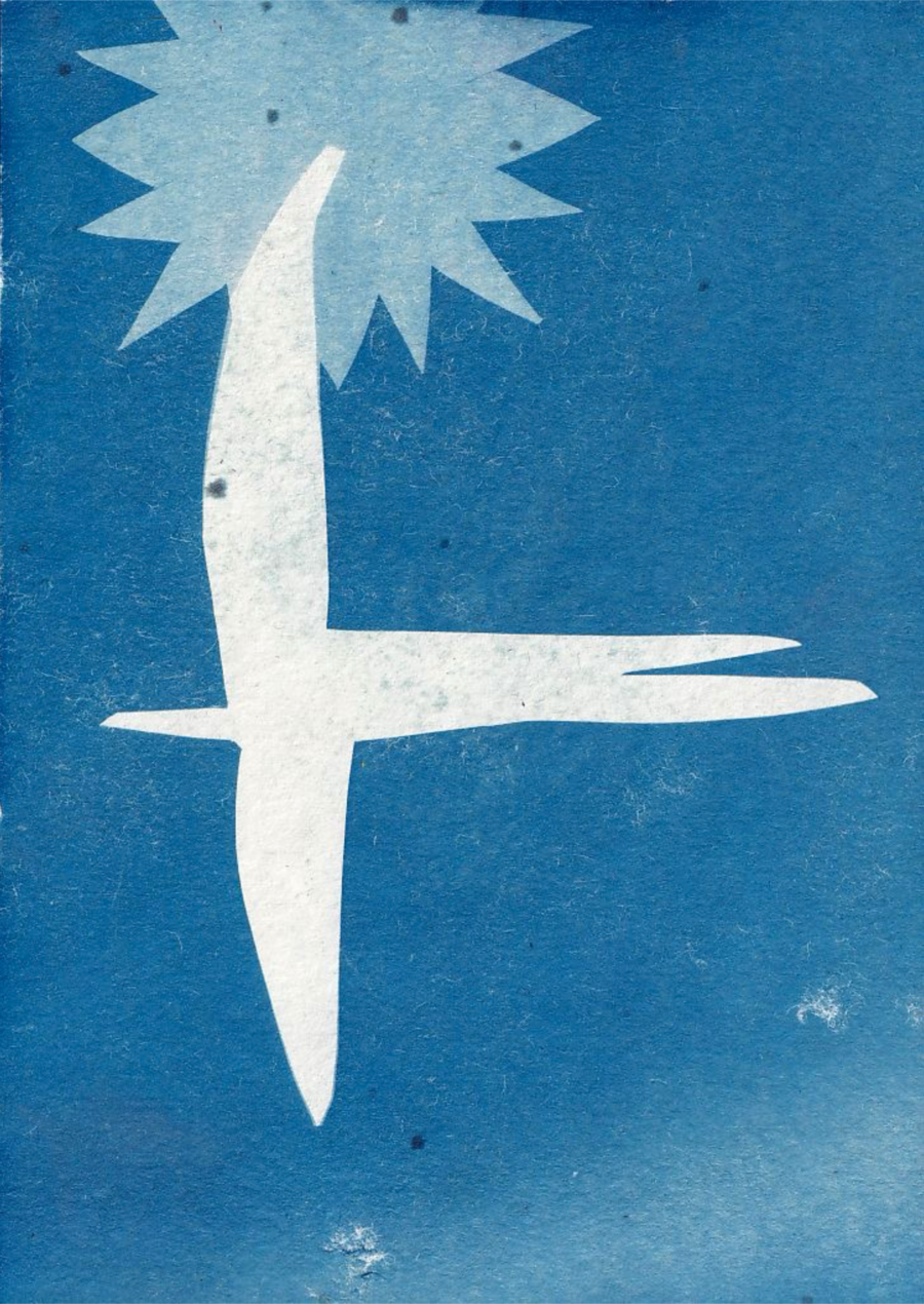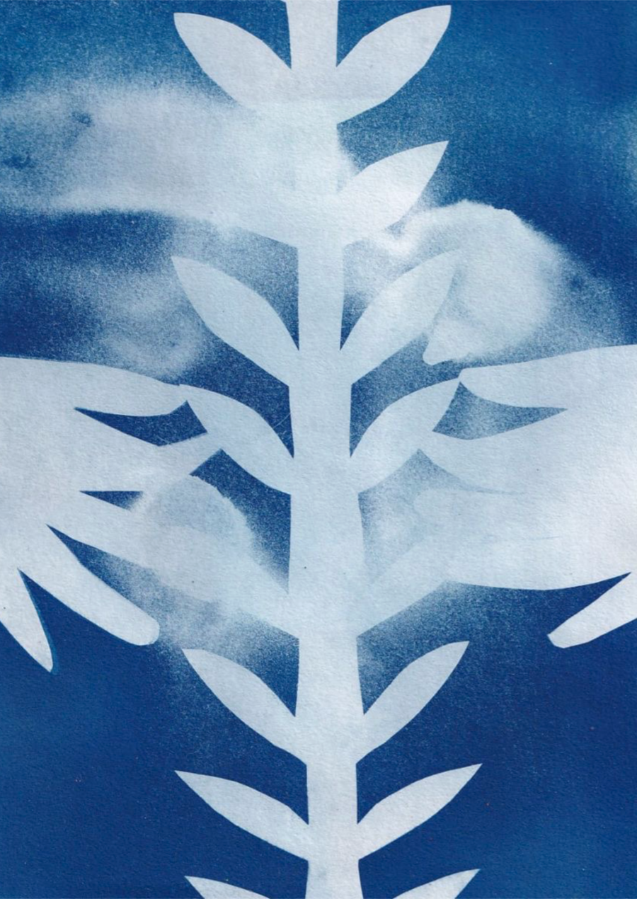 В этом исследовании я рассматриваю исключительно графические возможности цианотипии. Сама по себе техника не подразумевает никакой особенной пластики, в том плане, что это не какой-то конкретный материал, который нужно резать или процарапывать. Цианотипией по факту можно напечатать что угодно, что не пропускает свет. Очень часто цианотипию используют для печати фотографий. В этом исследовании я хотел посмотреть, что она может помимо этого, и сфокусировался в основном на коллаже.