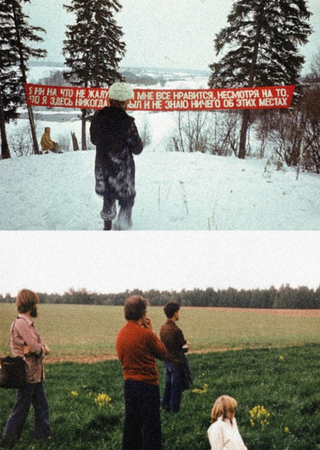 В практике художников, близких кругу московского концептуализма, перформанс оказывается средой, связанной с воплощением идеи о свободном автономном творчестве. Он максимально далёк от официальной визуальной культуры, поэтому в подпольной среде искусство действия «осмысляется как рекреационная зона, буквально территория отдыха от унылой рутины повседневности» (Обухова, 2014). Для его воплощения художники часто выбирают схожие места — подмосковные поля и леса — пространства, свободные от идеологического воздействия, связанных с ним визуальных черт и кодов. Также природный ландшафт становится местом, не принадлежащим никому, лишенным посторонних взглядов и знаков какой бы то ни было социальной коммуникации, зоной, в которой художник может чувствовать себя спокойно, раскрепощенно и свободно.