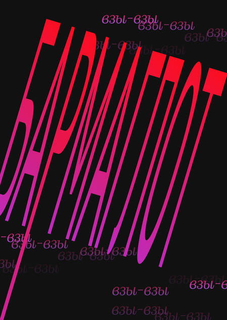 Two fonts were used to convey this feeling to me. Golos text presents a distortion of words, and Filosofia Cyr complements them with existing words by transmitting the Odic style of the work.