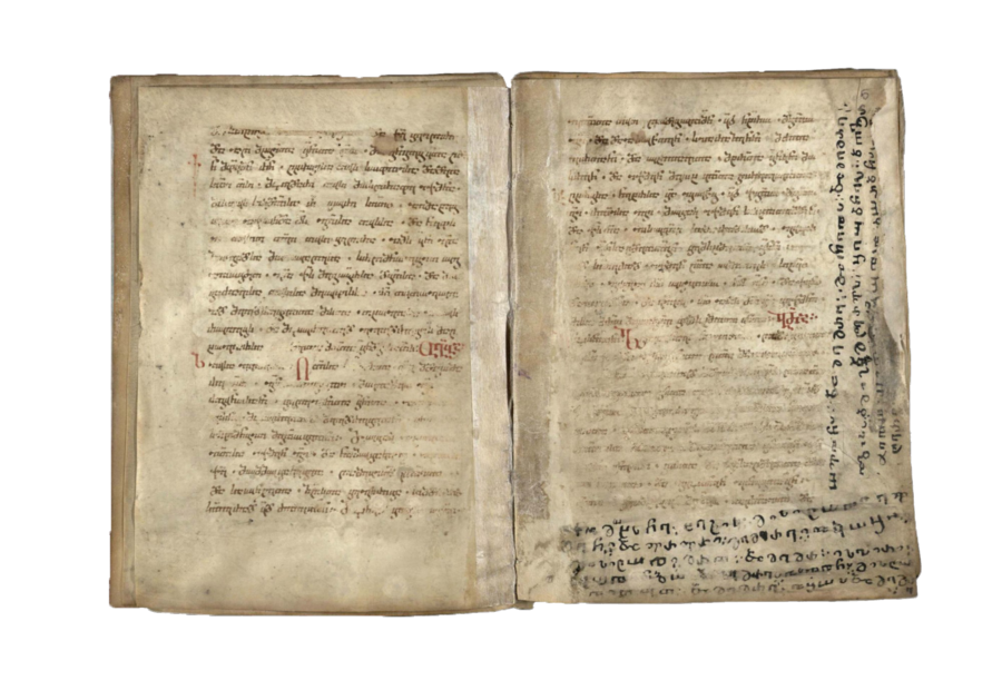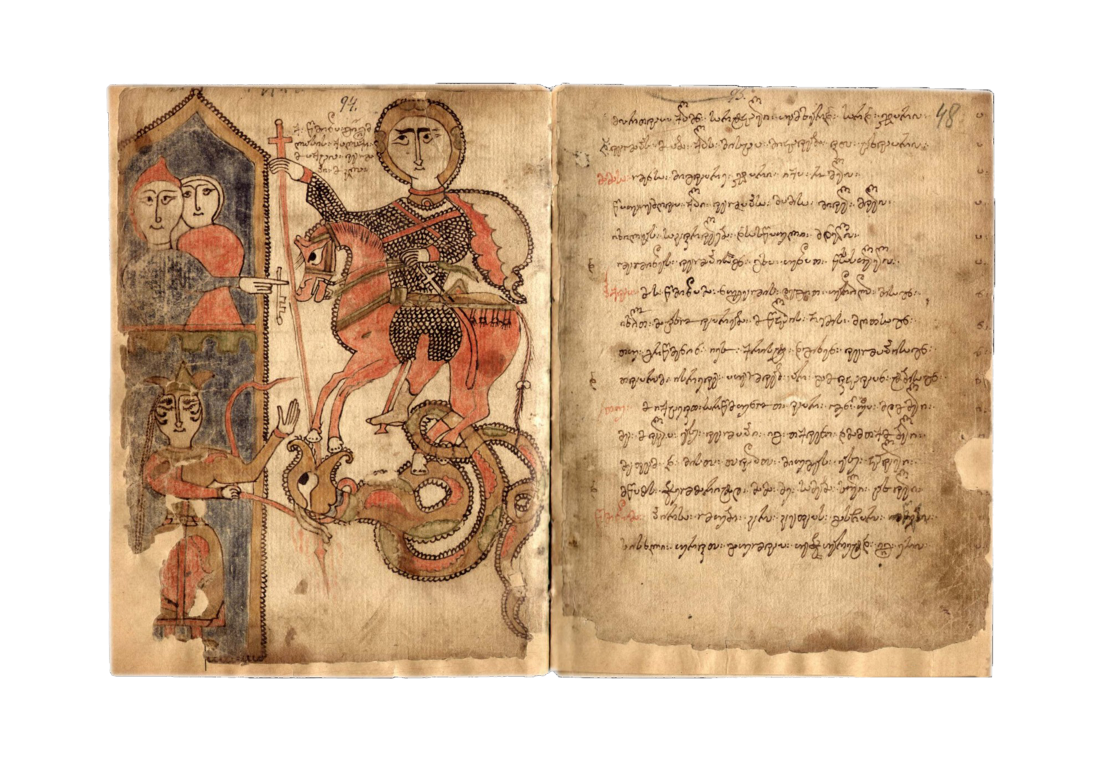 Акт жертвоприношения, написанная королём Тамаром для монастыря Шиомгвим, 1202 год Палимпсест, 1447 год Жизнь Св. Георгия в стихах, XVII век