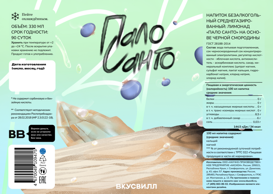 • Лимонад «Чёрная смородина-Пало санто» с электролитами