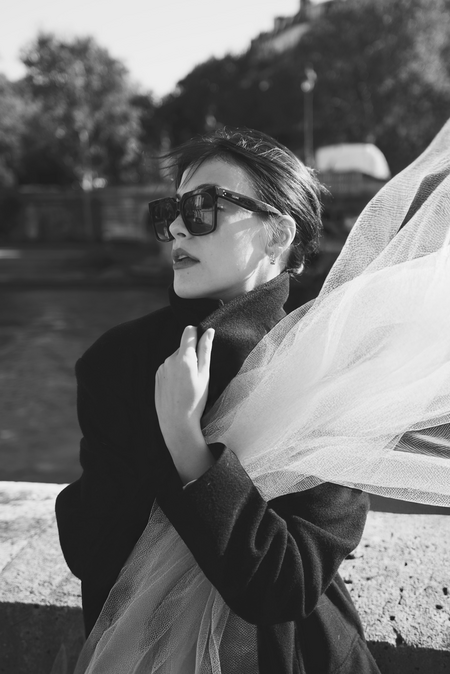Героиня движется по улицам Парижа, растворяясь в городской суете,