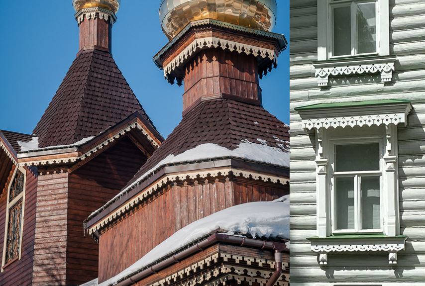 В основе формы были взяты элементы наличников сохранившихся в селе домов. Эксперименты с фотосьёмкой подсвеченной фольги позволили получить красивые цветовые переходы, напоминающие полупрозрачную, многослойную лаковую живопись. Всё это послужило основой для концепции и созданию стилеобразующих элементов.
