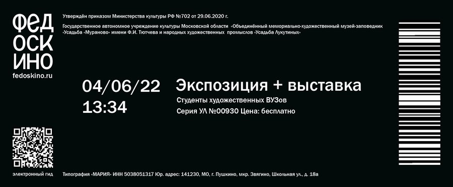 переделанный билет в музей, представлена лицевая и оборотная сторона