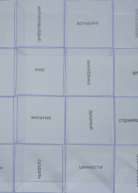 На прозрачный пластиковый куб я помещаю случайно выбранное слово из списка «Топ — 50 слов — предендентов на звание слово года».