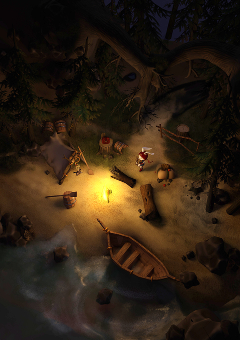 Dark night. A lonely bonfire on the shore of a troubled sea. Last preparations before the big trip… The project features a scene from the game «Down to the ground», in which the world plunged into darkness.