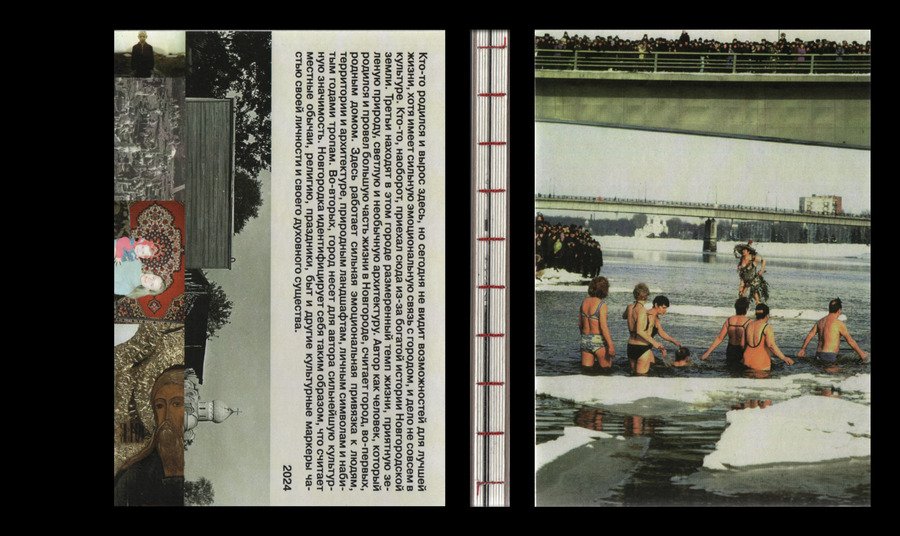 В этой визуальной работе автор хочет разобраться в проблеме идентичности новгородцев и поставить под сомнение гипотезу, которую автор сформулировал следующим образом: несмотря на то, что Великий Новгород давно утратил влияние и не является культурной столицей страны, сложившиеся за сотни лет традиции и старая культура города, сильно влияют на его образ и идентичность горожан.