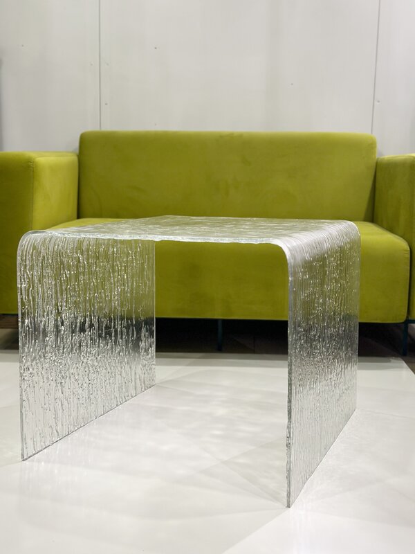 Стеклянная консоль выполнена из текстурированного стекла с индивидуальным дизайном.Текстура стекла имитирует замерзшую воду, важнейший элемент для жизни на Земле. Текстуры индивидуально выплавляются в печи при температуре 800°C. Этот процесс невозможно контролировать, так как стекло плавится в печи. Консоль изготовлена и собрана полностью из стекла, без использования каких-либо других материалов. Стекло-самый экологически чистый материал на планете.Оно не производит никаких выбросов. Кроме того, это единственный материал, который на 99% пригоден для вторичной переработки. Техническая новинка: искусство литья стекла давно известно, но забыто. Мы возродили его. В тоже время ни одна другая компания не производит стеклянные формы с таким процессом гибки, как ноги. Межотраслевая значимость продукта: продукт может быть использован в индустрии гостеприимства (отели).Это позволяет нам продемонстрировать наши уникальные возможности и продукты гостям столицы (страны). Эргономичность: очень удобен в использовании, безопасен и легко моется. Художественная значимость: изделие открывает новые направления в дизайне интерьеров, пространственном оформлении и акцентирует внимание Российского производств