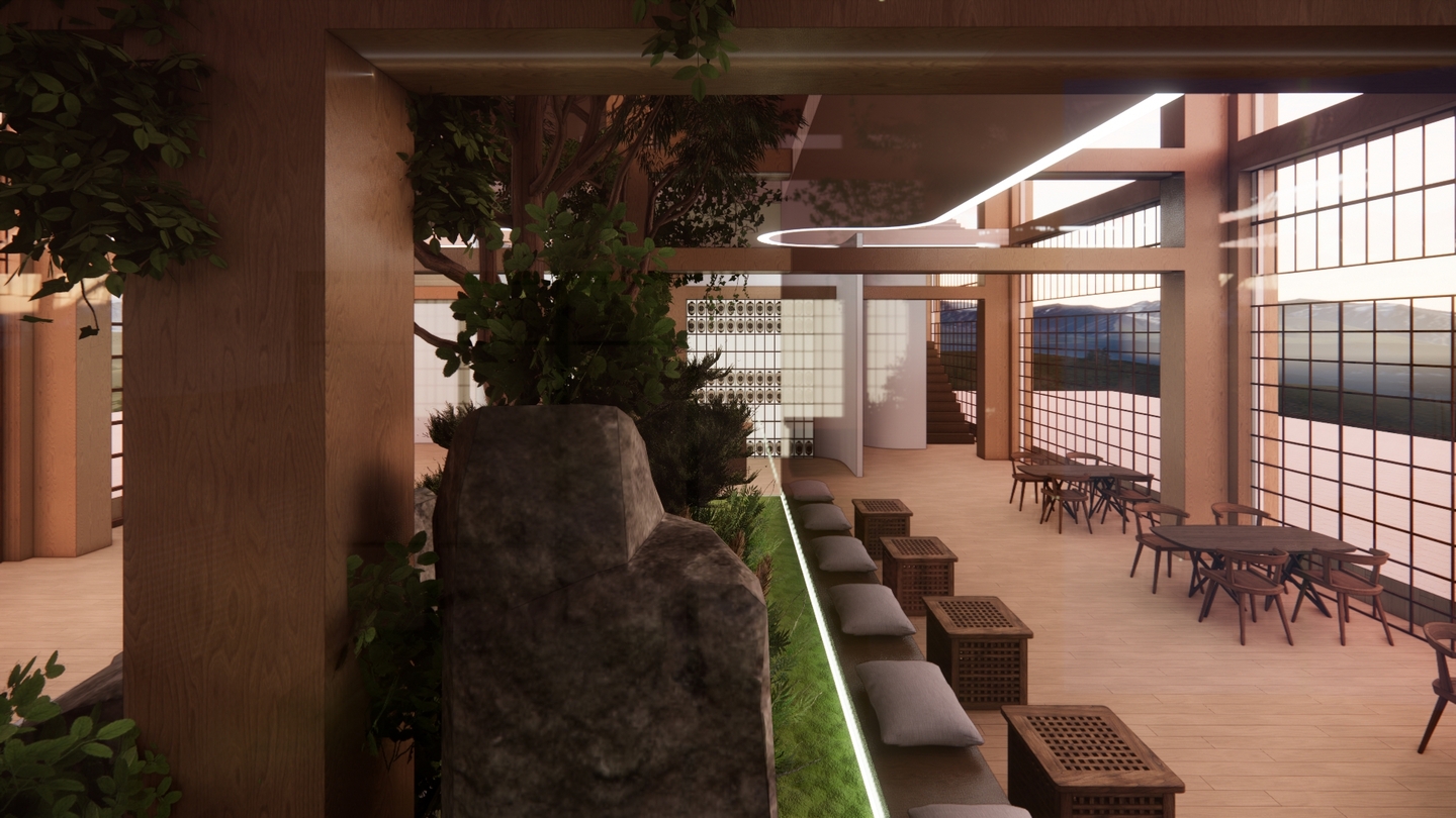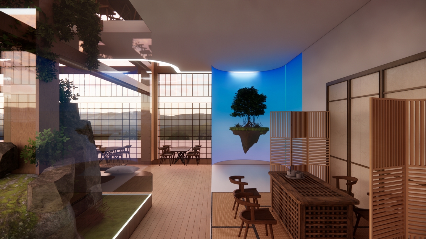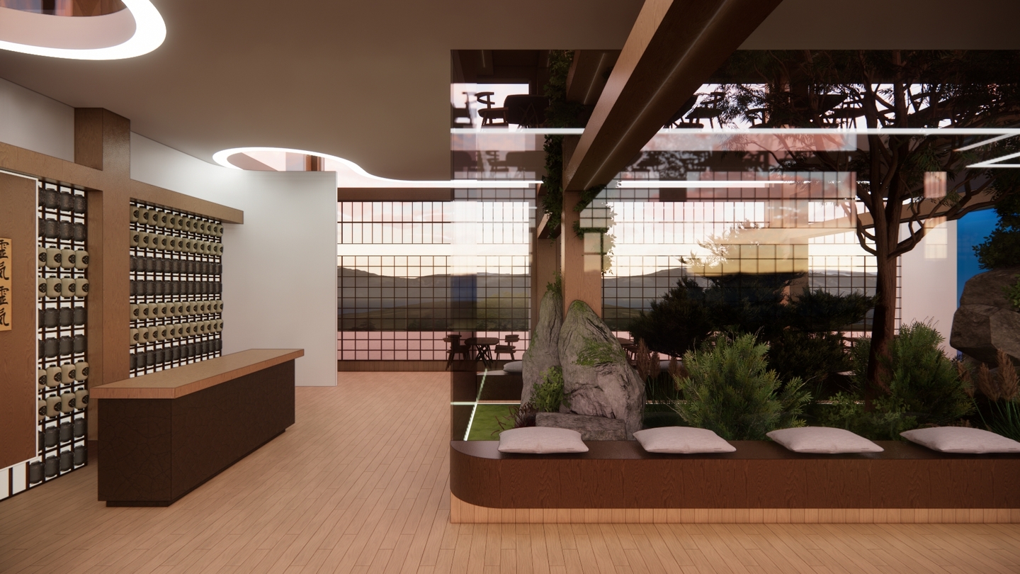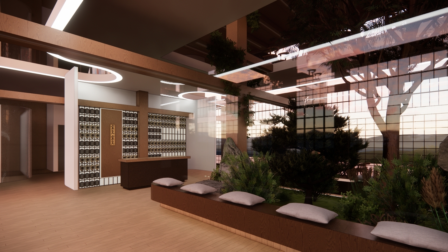 Дизайн проекта отеля «Rising Sun» воссоздает атмосферу таинственного Востока. Вдохновленный азиатской культурой и искусством, каждый уголок отеля олицетворяет гармонию и спокойствие. Вестибюль украшен деревянными колоннами и ригелями, создавая атмосферу стабильности. В номерах использованы натуральные материалы: деревянная мебель, шелковые подушки и классические ковры татами. Отель «Rising Sun» — это оазис спокойствия и элегантности в самом сердце Азии.