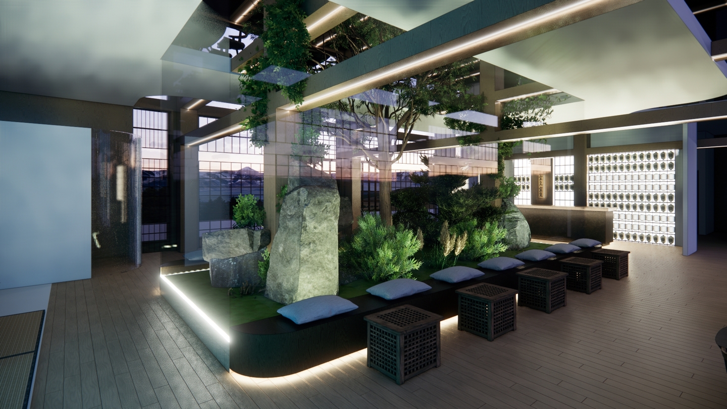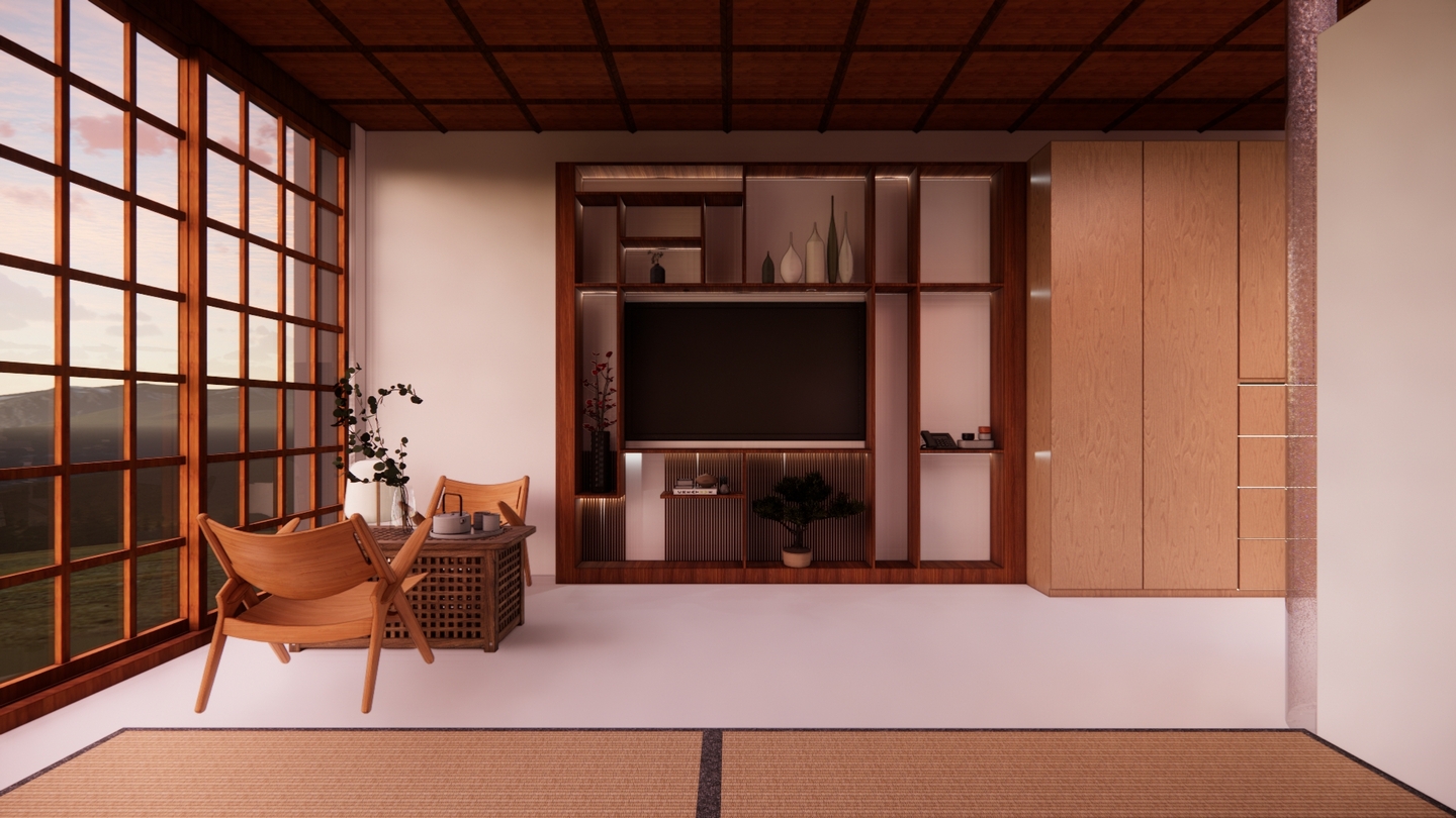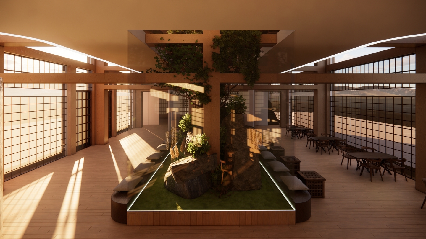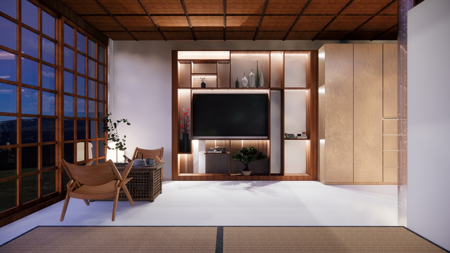 Дизайн проекта отеля «Rising Sun» воссоздает атмосферу таинственного Востока. Вдохновленный азиатской культурой и искусством, каждый уголок отеля олицетворяет гармонию и спокойствие. Вестибюль украшен деревянными колоннами и ригелями, создавая атмосферу стабильности. В номерах использованы натуральные материалы: деревянная мебель, шелковые подушки и классические ковры татами. Отель «Rising Sun» — это оазис спокойствия и элегантности в самом сердце Азии.