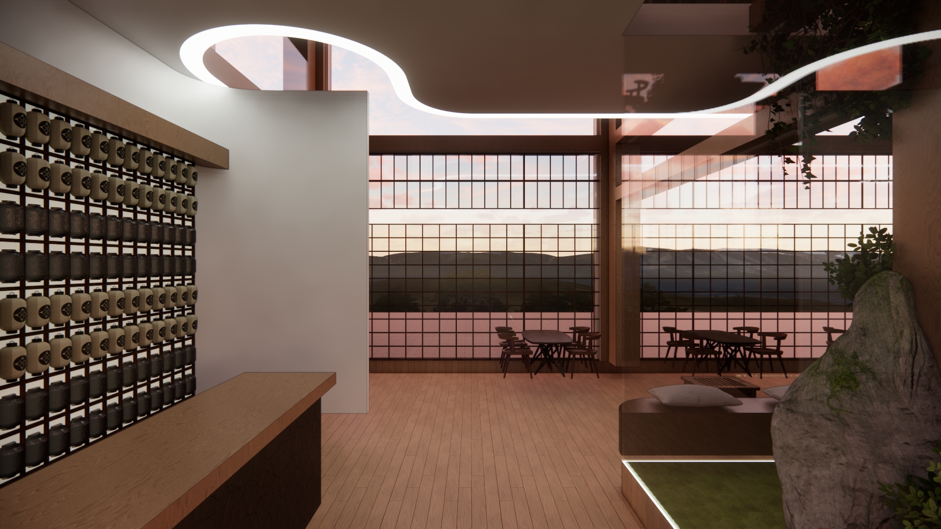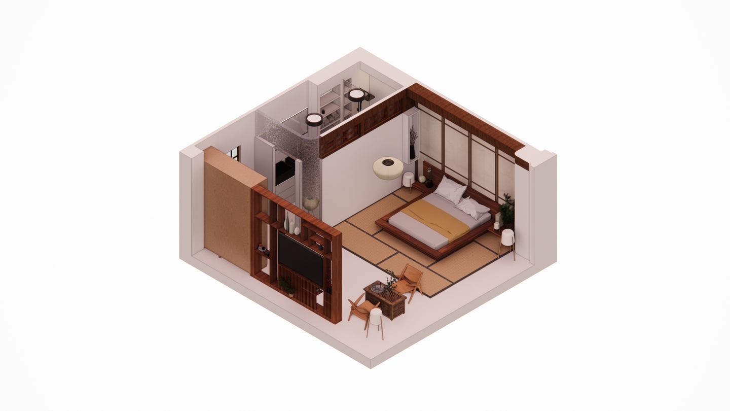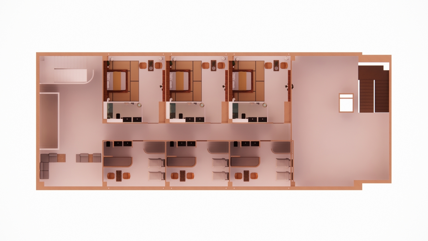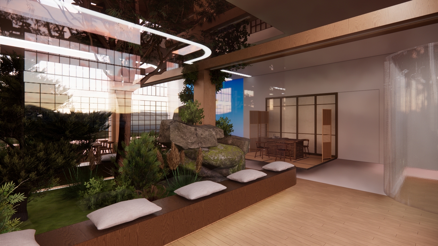 Дизайн проекта отеля «Rising Sun» воссоздает атмосферу таинственного Востока. Вдохновленный азиатской культурой и искусством, каждый уголок отеля олицетворяет гармонию и спокойствие. Вестибюль украшен деревянными колоннами и ригелями, создавая атмосферу стабильности. В номерах использованы натуральные материалы: деревянная мебель, шелковые подушки и классические ковры татами. Отель «Rising Sun» — это оазис спокойствия и элегантности в самом сердце Азии.