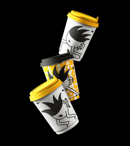 Для этого проекта мне нужно было создать дизайн для кафе, в котором гармонично сосуществуют две самые бодрящие вещи — рок и кофе. Моя идея заключалась в том, чтобы создать игривый и легко узнаваемый талисман, который бы мгновенно воплотил уникальную атмосферу кафе. А что может быть лучшим символом этого объединения, чем кружка-рокер? Эта концепция показалась мне очевидной и увлекательной.
