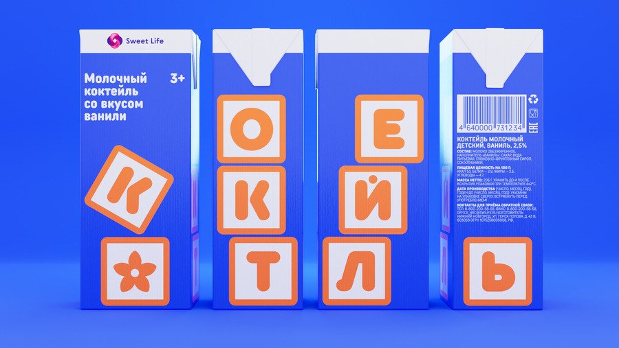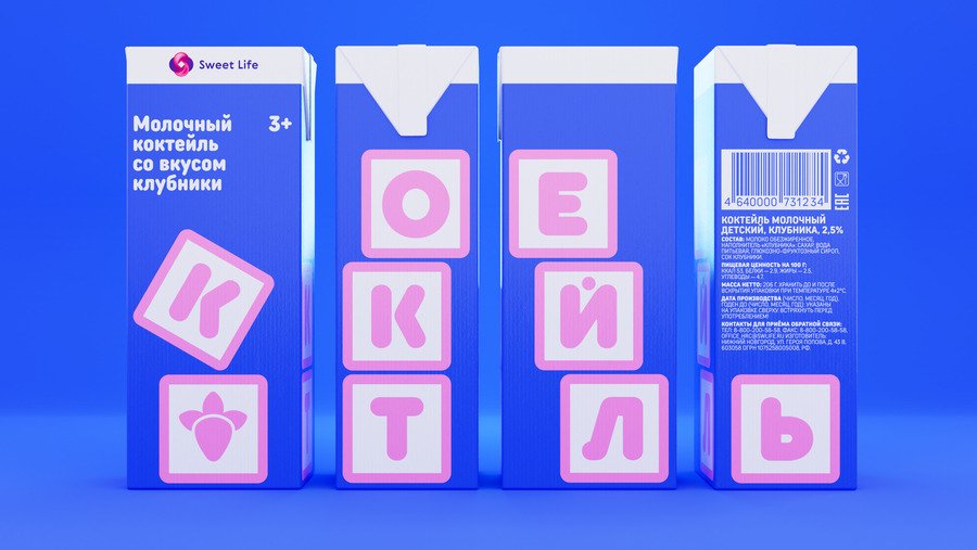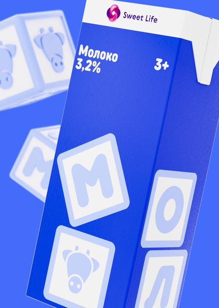 Sweet life — это собственная торговая марка сети супермаркетов Smart. Задача брифа состояла в том, чтобы разработать дизайн упаковки для детской молочной линейки, которая бы отражала характер и ценности бренда Sweet life и была бы привлекательной для мам и детей в супермаркетах.