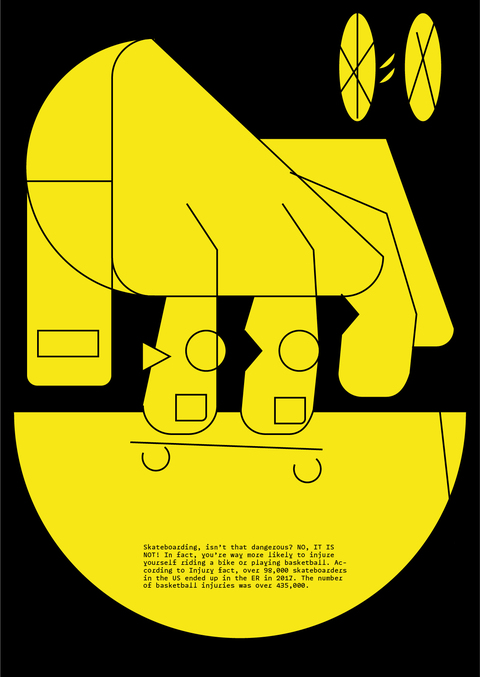 Skateboarding offers multiple opportunities for visual exploration. I tried to illustrate the main statistical facts, legends, and myths about skateboarding. I used posters, merchandise media, as well as the landing page.