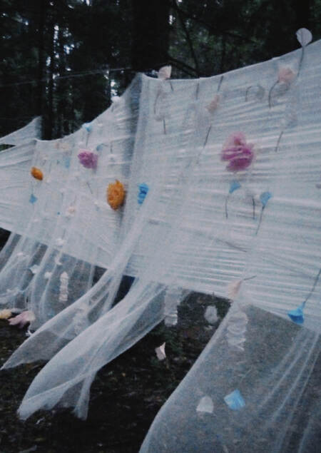 цветочные подвески. в первой фазе, человек только погружается в мир снов, поэтому испытывает чуство полета, именно в этой фазе чаще всего людям кажется, что они падают, поэтому было решено сделать цветочные подвески, которые свисают со стенок коридора. подвески символизируют ту же легкость и полет, цветы на них также символизируют воздушность и падение.