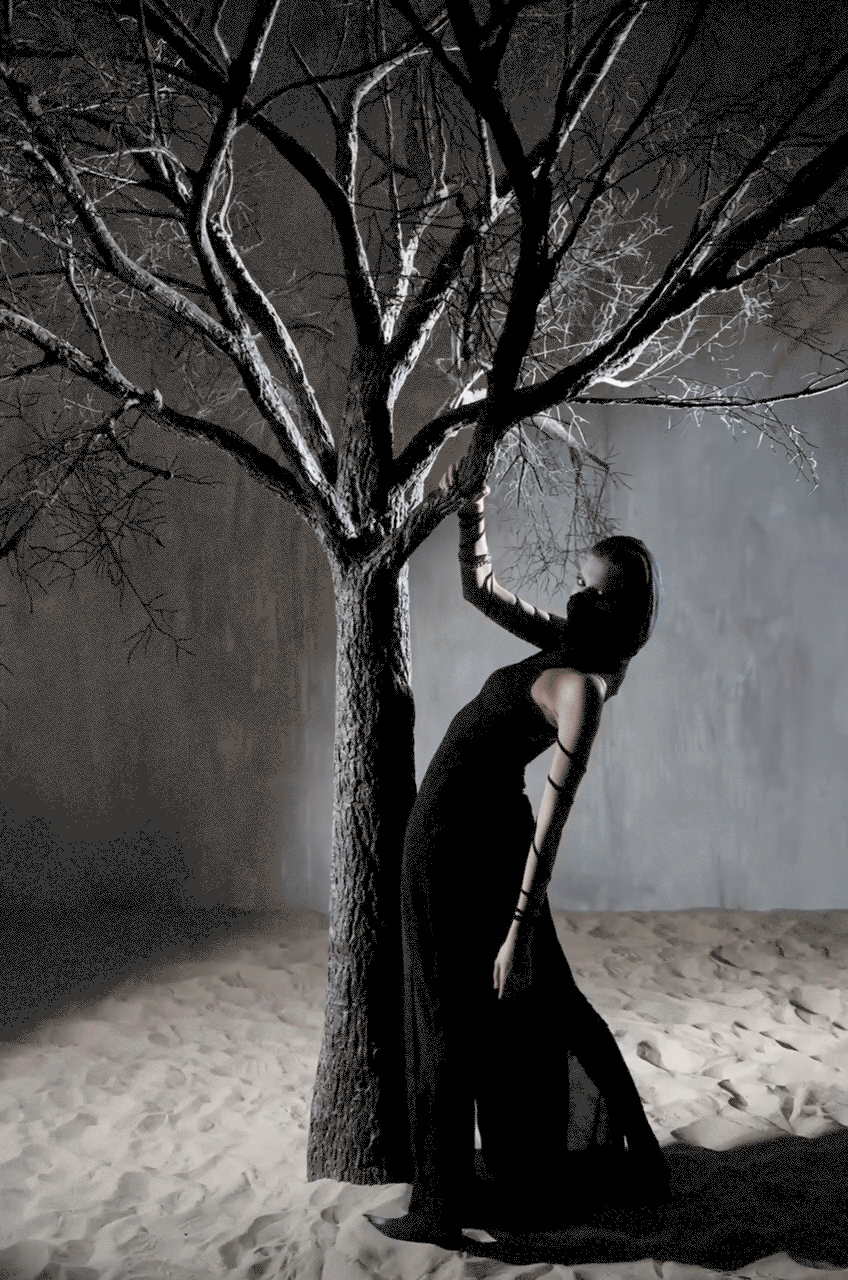 Ключевая идея: Три царицы ночи, похожие на кочевников в пустыне, проводят ритуал у дерева. Их цель: не оживить дерево, а сделать его памятником вечной ночи.