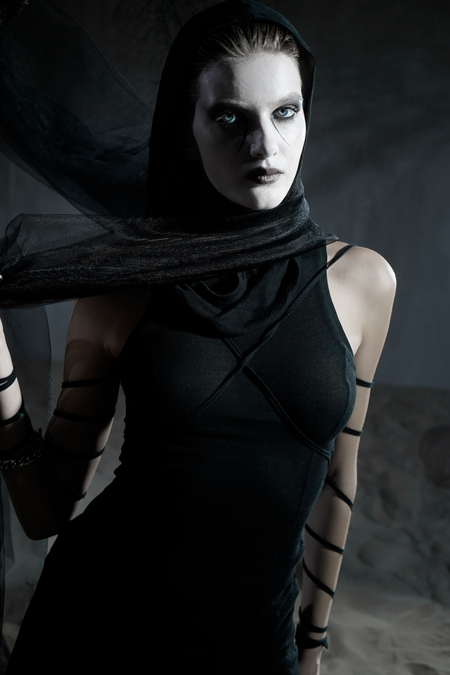 Рекламная кампания для бренда Rick Owens — тёмная, загадочная и с его фирменными цветами. Вдохновлено монументальными показами, монохромной палитрой и философией Rick Owens, где разрушение встречается с красотой.