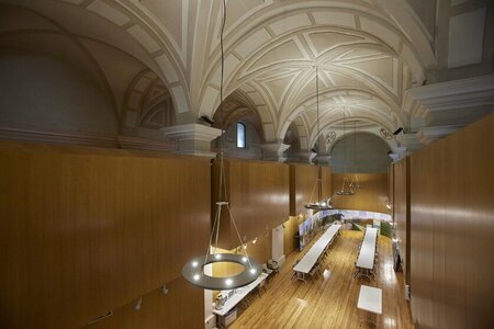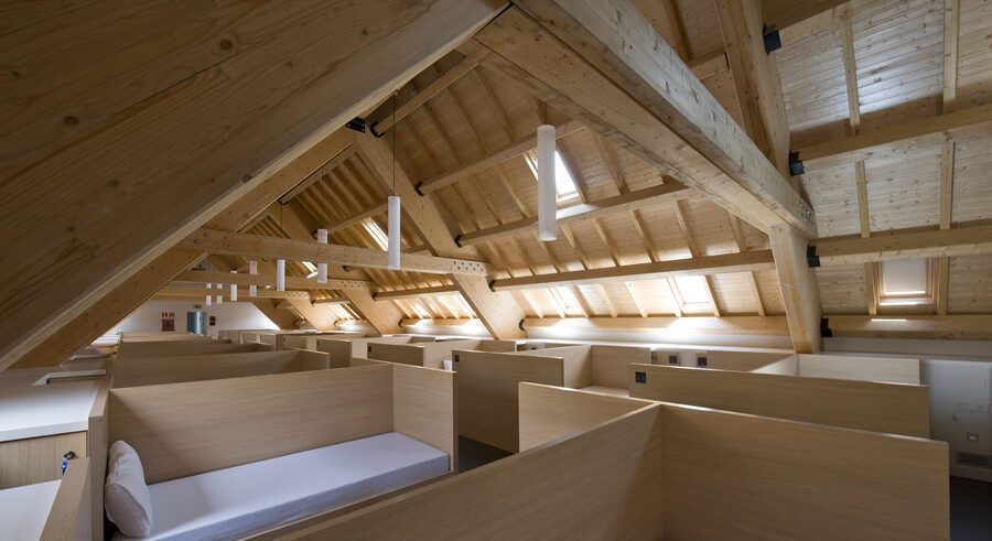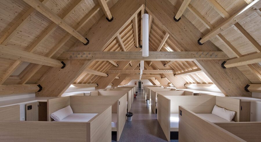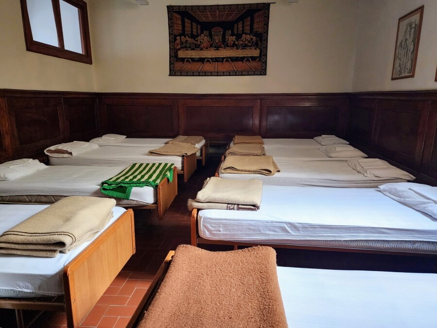 После недавних реставрационных работ в мансарде размещены 39 кроватей, где паломники могут использовать полуприватный уголок для отдыха. Светлая отделка придает ощущение чистоты и спокойствия, которое паломники приветствуют после долгого дня [4].