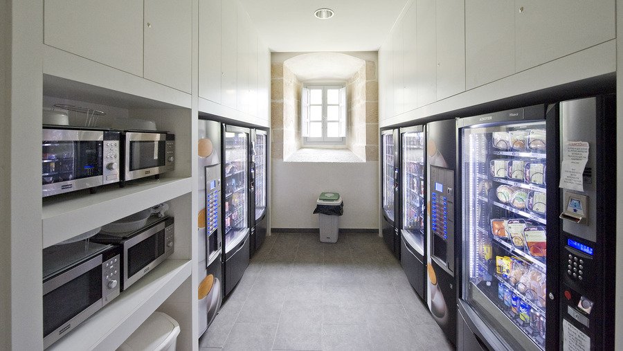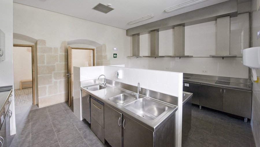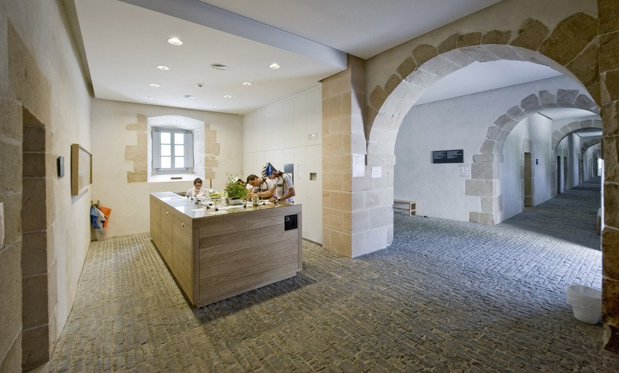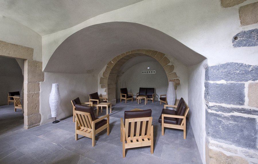 Приют «Albergue de Peregrinos de Roncesvalles», Наварра, Испания | Общий вид на комплекс/ Двор/ Ресепшен/ Зона отдыха/ Уборные/ Кухня/ Столовая/ Вендинг/ Читальня| Источник: alberguederoncesvalles.com