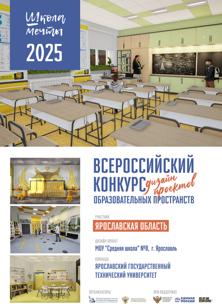Основным цветом выбраны насыщенные желтые оттенки, которые символизируют оптимизм и радость, способствуя положительному настрою и активному взаимодействию между детьми. В коридоре внедрена игровая зона, что позволяет учащимся развивать социальные навыки и расслабляться в перерывах. Зона буккроссинга предлагает возможность обмена книгами, что способствует развитию интереса к чтению и культуре обмена. Также предусмотрены уютные зоны отдыха с мягкими сиденьями, где ученики могут отдохнуть и пообщаться.
