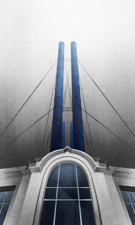 Основные выставочные залы расположены на уровне —1 и залиты естественным светом, как говорил Ренцо Пьяно, он является основой архитектуры ГЭС-2. В проекте использованы бетон, кирпич, стекло и сталь — лаконичные материалы, создающие ощущение, будто находишься внутри «скелета гигантской рыбы», образованного ажурными металлическими конструкциями. А синие трубы визуально отмечают здание в городском ландшафте и отсылают к его промышленной истории.