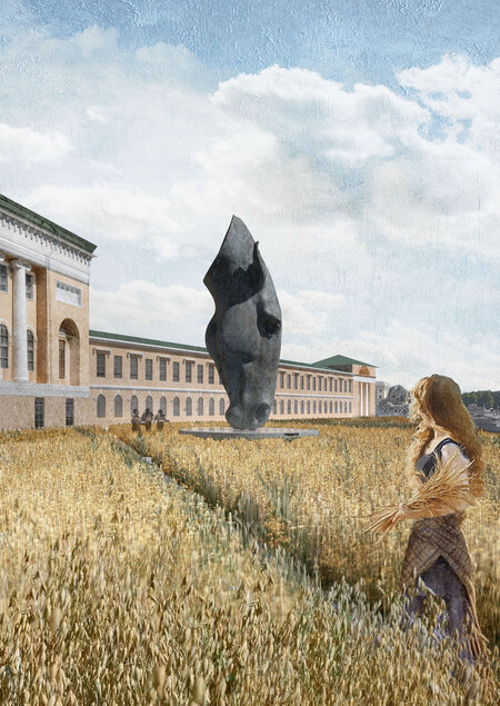 На площади предполагается высадить поле овса и установить скульптуру современного художника Ника Фиддиана Грина «Still Water». Под площадью реализовывается подземный паркинг.