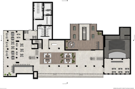 1 этаж: лаундж зона, кафе 2 этаж: ресепшен