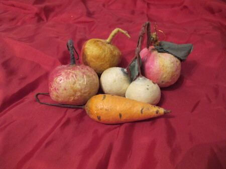 Ёлочные игрушки 1950-х годов. Папье-маше, стекло. Из личного архива автора.