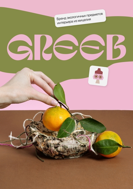 GREEB — бренд экологичных предметов интерьера из мицелия. Объекты выращены из смеси природных волокон и живых грибов, могут быть переработаны или сами стать основой для следующих вещей.