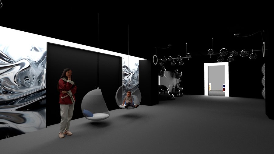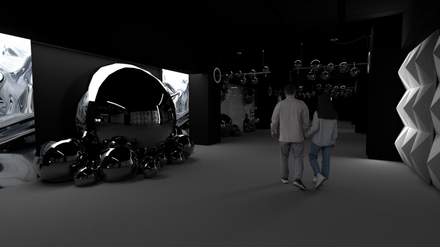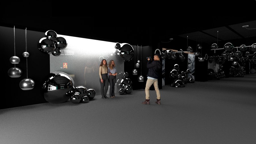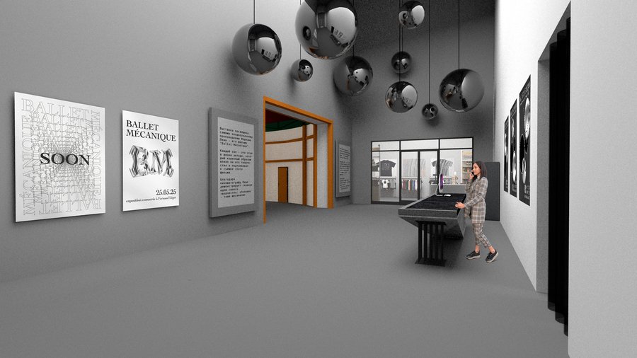 Погружение в Механический балет (зал 7): зал с фотозонами для полного покружения зрителя в фильм Леже, главнам символом которого стал серебрянный качающийся перед оператором шар. В этом зале можно почсуствовать себя частью единого механизма.