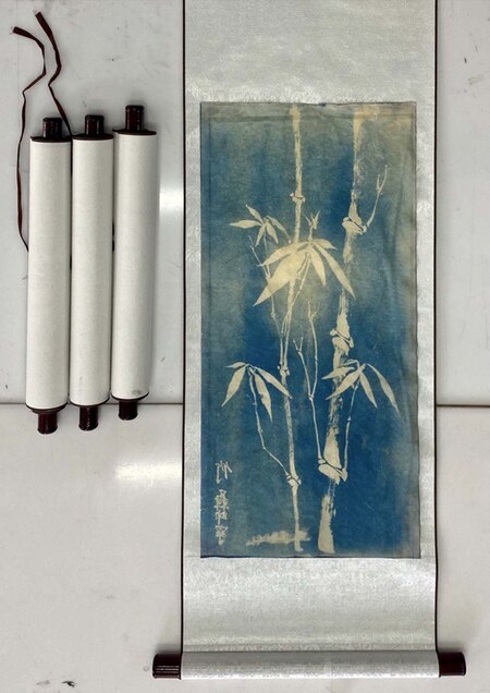Используя сочетание Востока и Запада, работа объединяет традиционную китайскую живопись с Цианотипией, заново представляя в цвете Берлинской лазури классические предметы китайской живописи, а именно: сливу, орхидею, бамбук и хризантему, эти четыре растения в китайской культуре отражают благородство, их называют «четыре джентельмена».