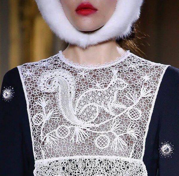 Эти детали — крестецкая строчка, кадомский вениз, ростовская финифть, подсмотренные все в том же бабушкином гардеробе, хрусталь из Гусь-Хрустального, созданное вручную плетение из бисера, — то, чем сегодня славится Ulyana Sergeenko как дом, поддерживающий отечественные ремесла и выводящий их на мировой уровень.