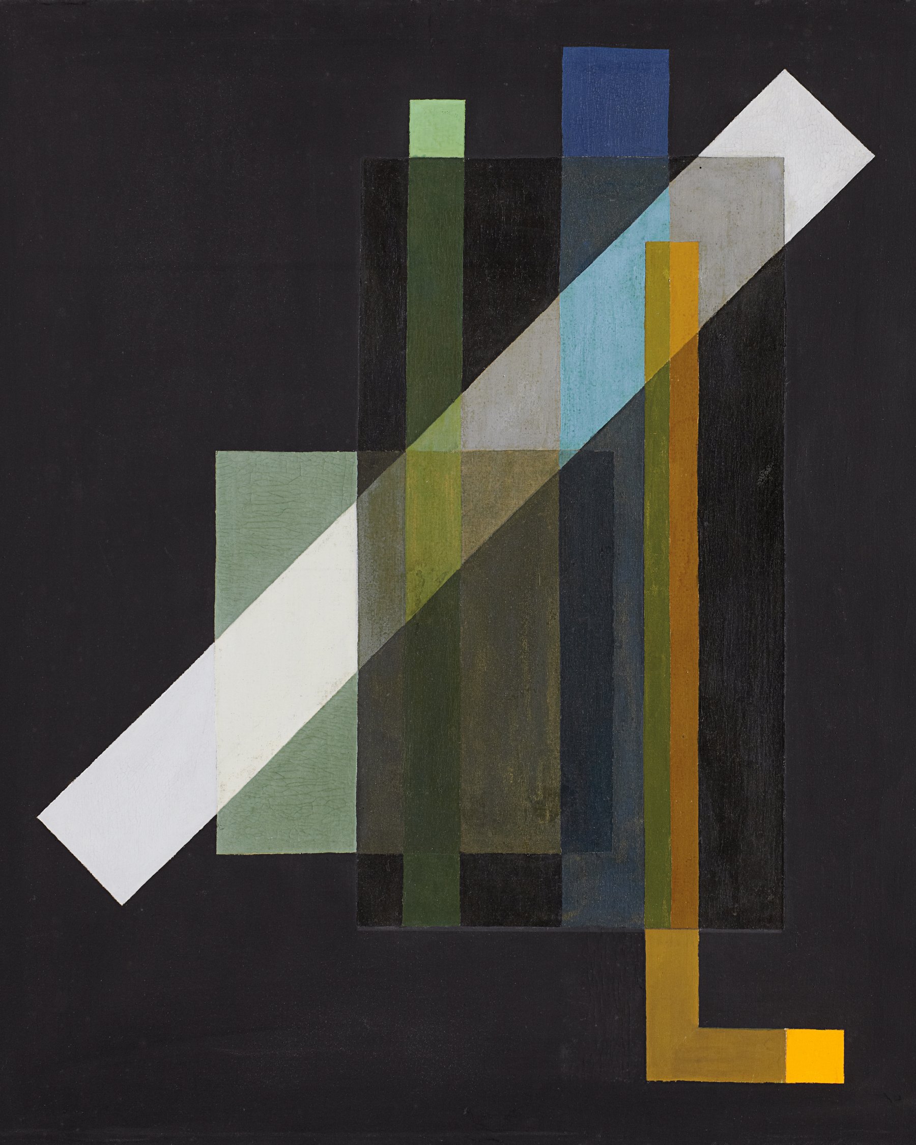 Ярким примером реализации такого подхода является работа «Конструкция», созданная в 1924 году. Это произведение можно отнести к жанру абстрактной конструктивистской живописи. Оно выполнено маслом на холсте и представляет собой динамичную композицию, состоящую из наслаивающихся вертикальных полос, а также прямоугольников и квадратов различных цветов — желтого, синего и зеленого — на черном фоне. Белая диагональная полоса, пересекающая композицию от правого верхнего угла к нижнему левому, создает эффект движения и усиливает взаимодействие между формами. В картинах Мохой-Надя можно увидеть предвосхищение идей современного графического дизайна, промышленного проектирования и визуальных коммуникаций, что подчеркивает его значимость как одного из ведущих мастеров авангардного искусства.