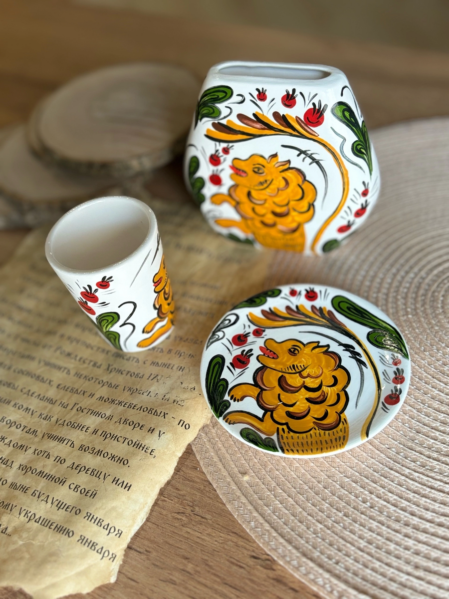 Бренд предлагает минималистичные предметы декора с орнаментами, вдохновленными вышивкой остяков или символами археологических находок региона. В коллекции — вазы, подсвечники, посуда и декоративные доски.