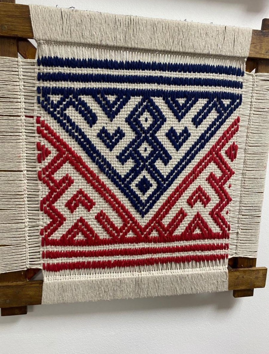 Как объяснила Ксения, это новый взгляд на традиционное ткачество. Художественные гобелены и текстильные панно создаются на основе мотивов легендарной остяцкой вышивки.