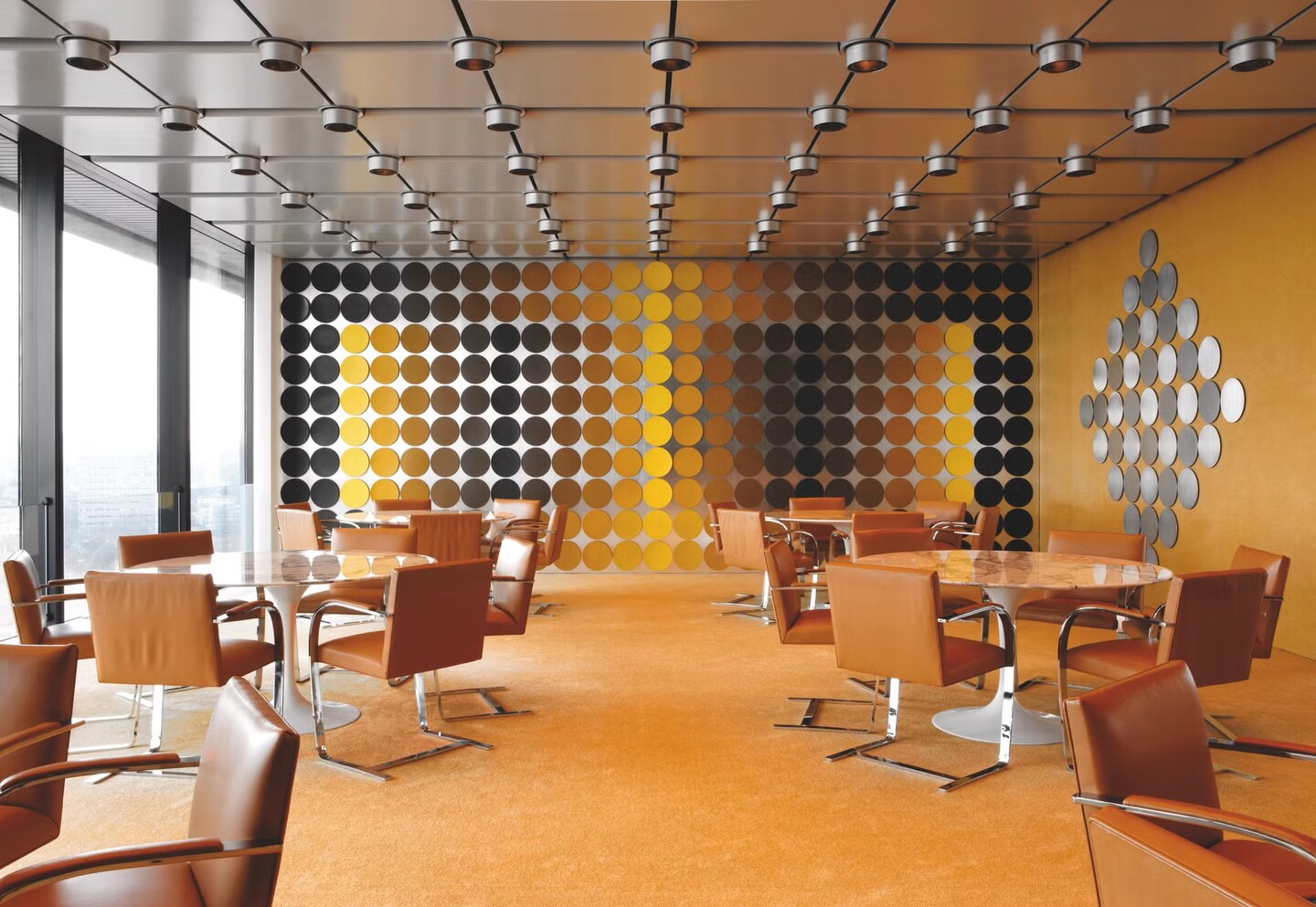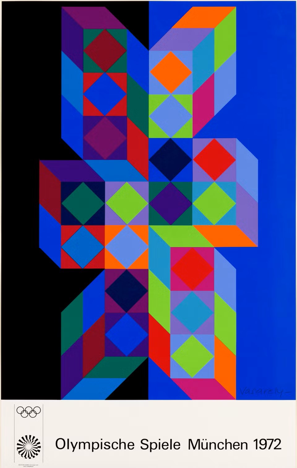 1. Логотип Renault, 1972 2. Плакат к Олимпийским играм в Мюнхене, 1972 3. Шахматы, 1979 4. Ковер, 1970 5. Столовая, 1972 6. Фонда Вазарели в Экс-ан-Провансе, 1976