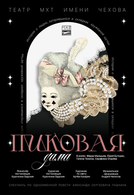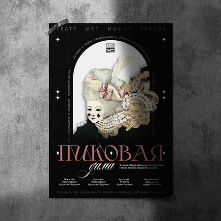 Германн — главный герой «Пиковой дамы» понимает, что он — «игрок», и всю жизнь избегает участия в играх. Однако легенда Томского о бабушке, знающей магические комбинации, совершенно меняет Германна. Его захватывает эта мистическая возможность. Как будто злой рок, который был предопределен. Но был ли? Или человек сам творит судьбу? В концепции спекталя хотелось сохранить эту дилемму. Образ куклы передает как влияние судьбы (кукла не может без управления), так и шуточность, ненастоящесть происходящего (всего лишь кукла, детская шалость). Все герои повести как будто попали в ажурную паутину и копошатся там, пытаются нащупать эту «лучшую» жизнь.