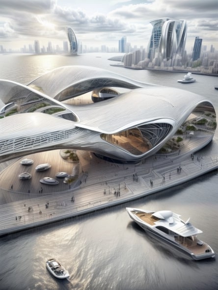 Так как наш город представляет собой вариант среды будущего, воспользуемся технологиями завтрашнего дня и посмотрим на него через призму реальности с помощью искуственного интеллекта на основе ручных эскизов.