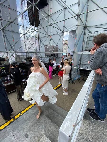 Гастроли в Минске прошли успешно. Дизайнеры поучастовали в двух показах: в закрытом для узкого круга и в общем на второй день события, который проходил на уличной площадке в самом центре города у Ратуши.