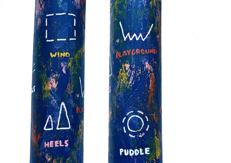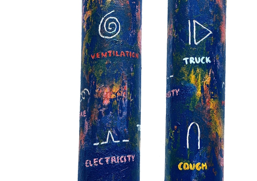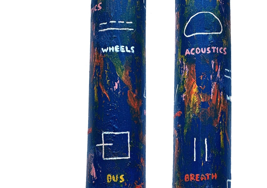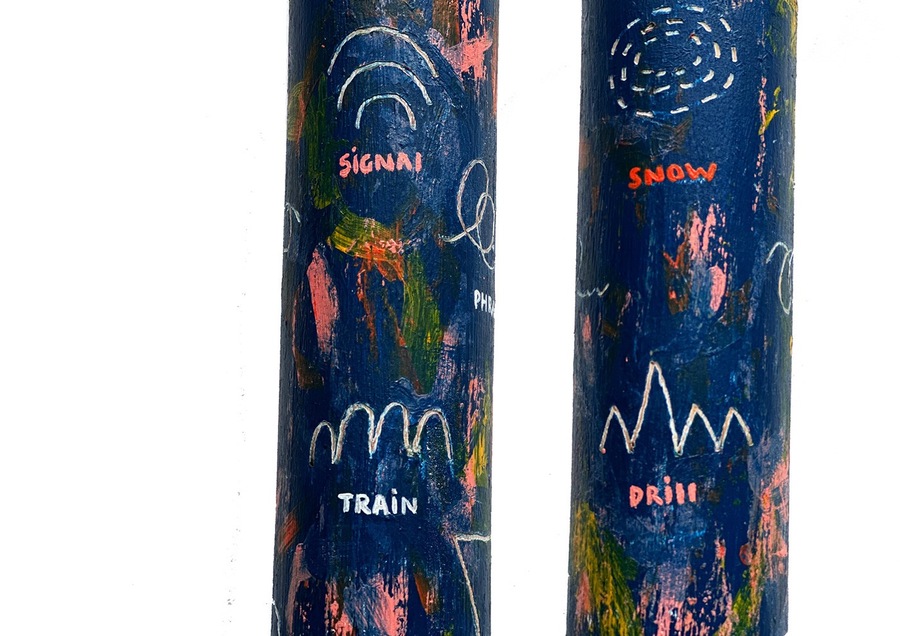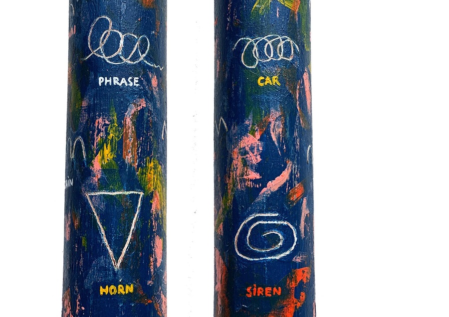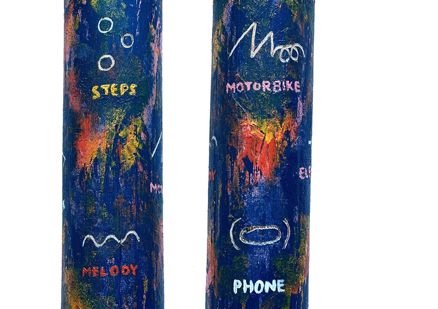 Обьекты из серии «Музыка города» 2023 высота: 24 см полено, интерьерная краска, паяльник