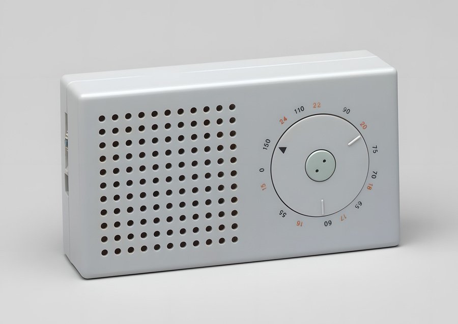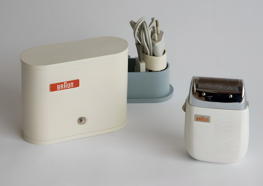 Примеры дизайна Дитера Рамса; 1. Транзисторный приемник Braun Т3 (1958); 2. Электробритва Braun Combi DL5 (1957); 3. Стул из серии 622 (1962).