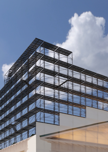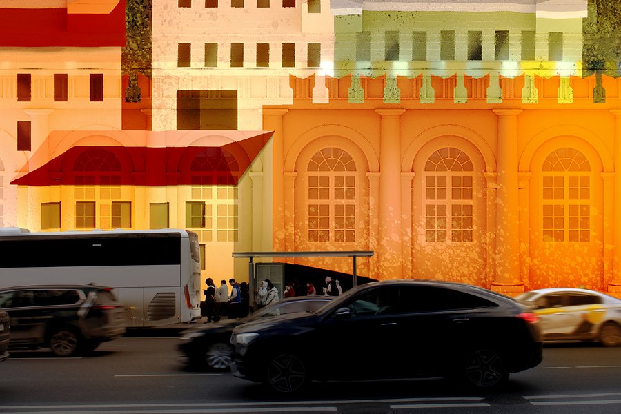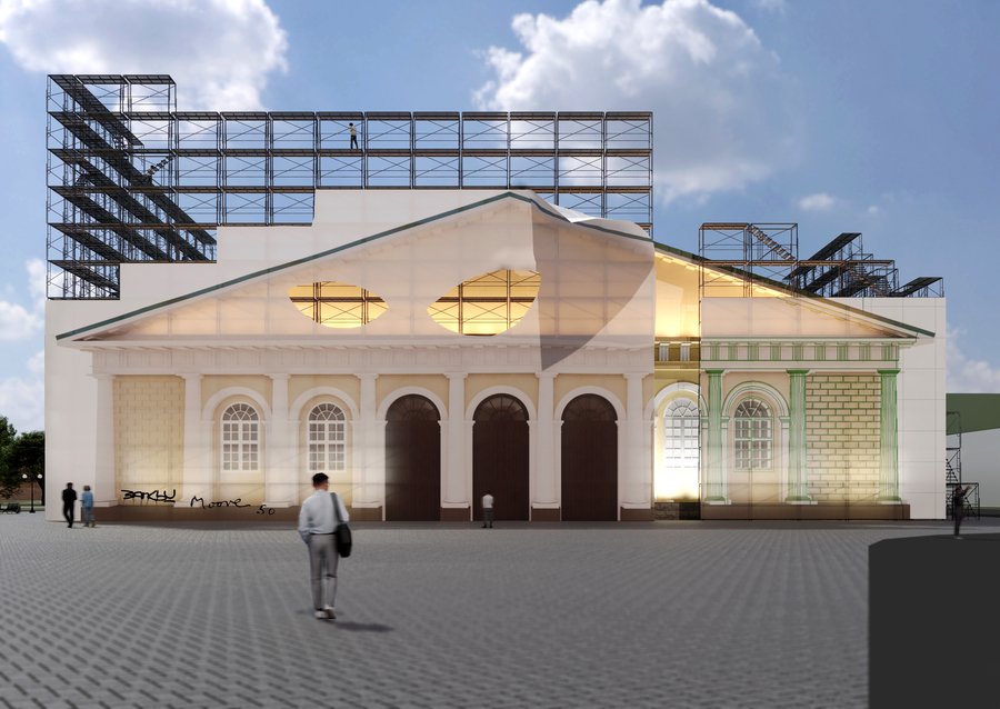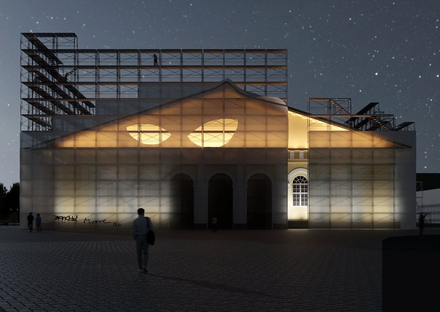 Также в проекте я реализую личные переживания, связанные с опытом работы в строительной компании. После многочисленных правок, оптимизаций бюджета, согласований и экспертиз мои идеи и эскизы сводились к решению затянуть все баннерами или фальш-фасадами.